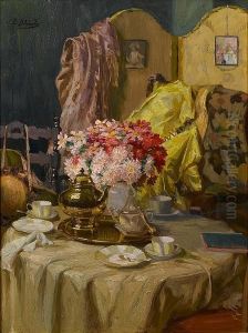 Interior With Flowers And Tea Set