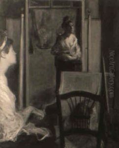 Brustbild Einer Jungen Dame Inrostbraunem Kleid En Face