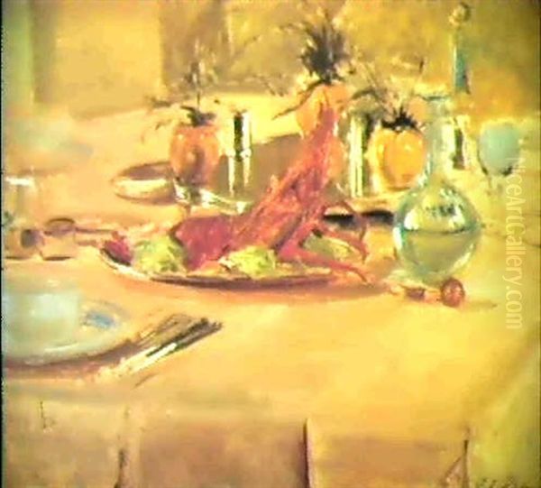 Nature Morte A La Langouste Oil Painting by Jacques-Emile Blanche