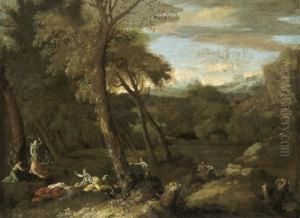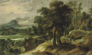 An Extensive River Landscape With The Angel Appearing To Balaam's Ass