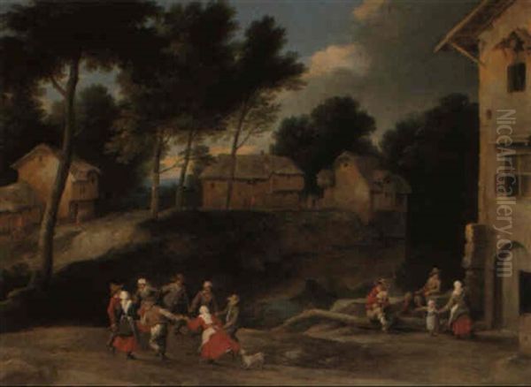 Village Scene With Peasants Dancing