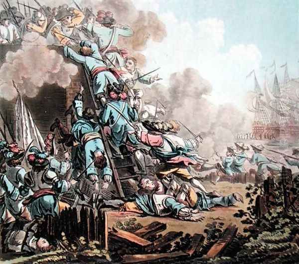 Capture of the Fort of San Salvador, Sicily 1674, engraved by Jean Baptiste Morret fl.1790-1820, 1789