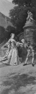 For the best visual impact, hang your Scene Galante Dans Un Parc at eye level in a well-lit area, preferably with indirect natural light or soft artificial lighting. Avoid direct sunlight and high humidity areas to protect the artwork.
