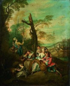 Scene Galante Dans Un Parc Oil Painting by Jacques Sebastien Le Clerc