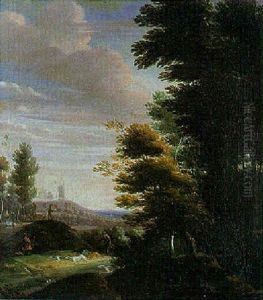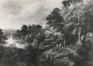 Extensive Landscape With A Sportsman And Other Figures At The Margin Of A Wood