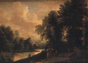 A Wooded Landscape With Travellers On Horseback (collab. W/pieter Meulener)