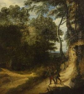 A Wooded Landscape With Travellers On Horseback (collab. W/pieter Meulener)