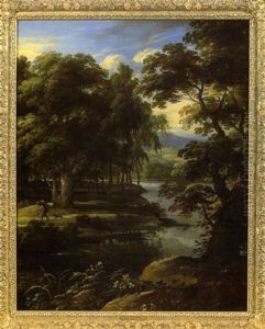 An Extensive Wooded River Landscape With A Hunter In The Foreground