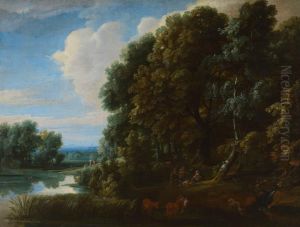 A rocky cove with fisherfolk on the shore, an artist sketching in the foreground