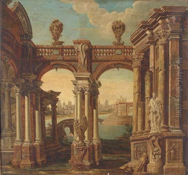 A Capriccio Of Classical Buildings With A Lake And A Townbeyond
