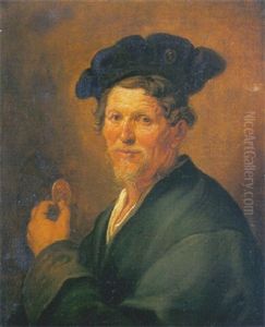 Portrait Of An Old Man In A Grey Coat And Beret, Holding A Portrait Medallion