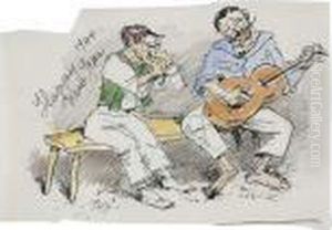 Two Men Playing The Lute And Singing Beside A Table In An Interior