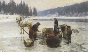 Jahn Ekenæs was a Norwegian painter, best known for his landscapes and genre scenes capturing the rural life of Norway in the late 19th and early 20th centuries. Born on December 19, 1847, in Drammen, Norway, Ekenæs showed an early interest in art, prompting his studies at the Royal Danish Academy of Fine Arts in Copenhagen. Under the guidance of prominent Danish artists such as Vilhelm Kyhn, he honed his skills and developed a keen eye for the nuances of light and atmosphere that would characterize his later work.