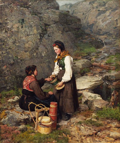 Bring the timeless beauty of Jahn Ekenaes's To Kvinner I Bunader Fra Flesberg I Numedal into your home with a handmade oil painting reproduction. Carefully recreated on canvas by skilled artists using traditional techniques, this piece captures the delicate brushwork, subtle light, and vibrant color of the original masterpiece. With museum-level quality and rich texture, it brings elegance and artistic depth to any space. Enjoy free shipping and make this masterpiece a part of your personal collection.