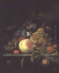 Still Life Of Grapes, Peaches, And Figs With A Landscape Beyond