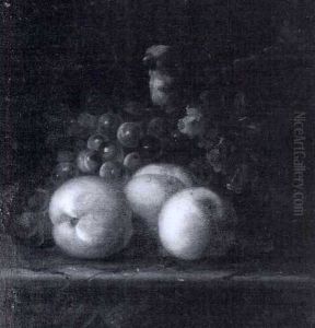 A Parrot Amongst Flowers In A Classical Vase With A Monkey In The Foreground Amidst Various Fruit In A Parkland Landscape