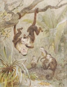 Menagerie Of Wild Fowl With Monkeys