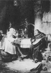 Das Trinkgelage. Vergnugte Runde Bei Einem Glas Wein In Der Stube