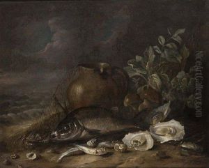 Jakob Gillig was a Dutch Golden Age painter, known for his detailed still life paintings. Born in Utrecht, the Netherlands, in 1636, he became an important figure in the development of still life as a genre, particularly in depicting fish and market scenes. Gillig's work is characterized by a meticulous attention to the naturalistic representation of his subjects, often set against a dark background that emphasizes the vivid colors and textures of the still life elements.