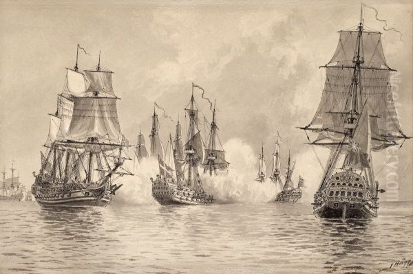 (the Convoy Ship Oland Battling The English Squadron Off The English Coast July 1704