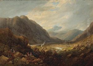 A Wooded Mountainous River Landscape With Cattle Watering