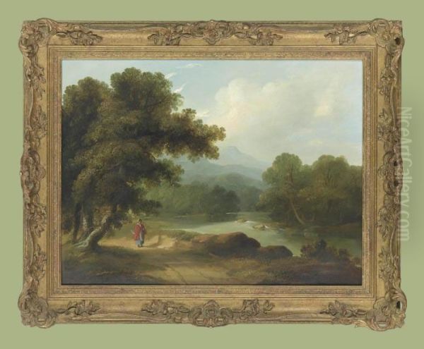 A Wooded River Landscape With A Woman On A Track