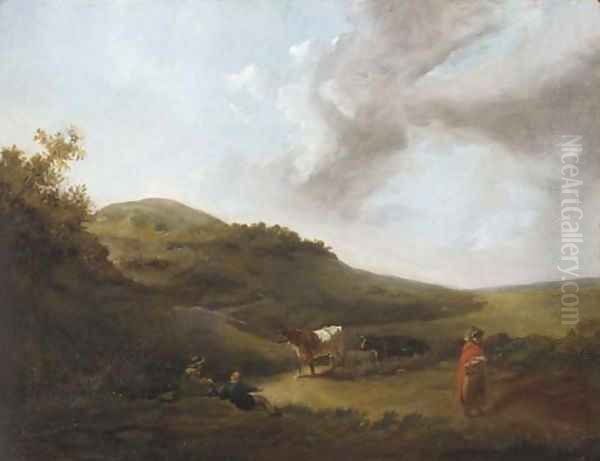 Figures and cattle on a hillside track