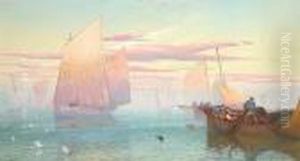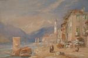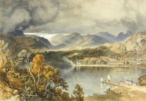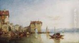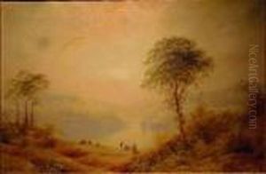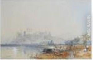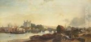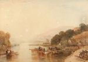 Figures Boating On A Lake, A Ruined Castle Beyond