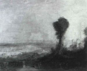 Figures And Cattle On A Bank Before A Cathedral