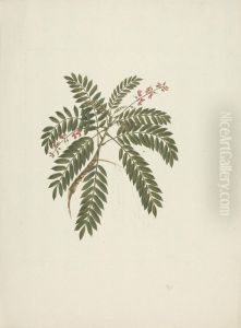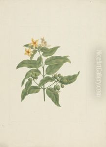 finished drawing of flowering plant with details of flowers and leaf and fruit