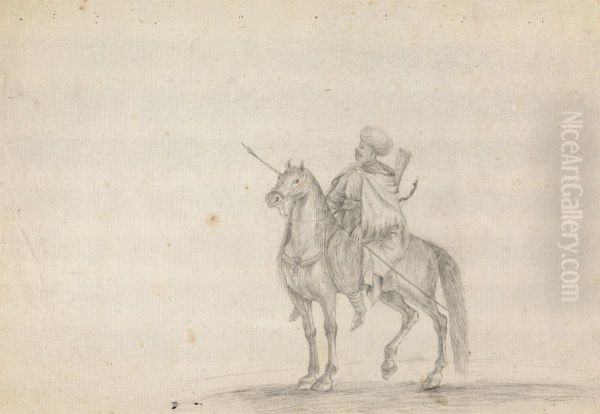 Man on Horseback Carrying a Spear Oil Painting by James Bruce