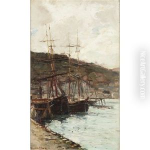 In addition to his landscape works, Noble also produced a number of marine paintings. His experience and fascination with the sea were reflected in his detailed and dynamic representations of ships and coastal life. He had a particular talent for conveying the movement of water and the play of light on its surface, which added a lively quality to his seascapes.