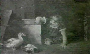 A Young Girl With Ducks Beside A Stream