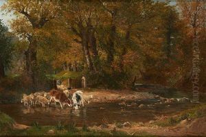 Bring the timeless beauty of James Desvarreux-Larpenteur's A Pastoral Landscape With A Shepherdess And Her Flock And A Sheepdog Keeping Watch into your home with a handmade oil painting reproduction. Carefully recreated on canvas by skilled artists using traditional techniques, this piece captures the delicate brushwork, subtle light, and vibrant color of the original masterpiece. With museum-level quality and rich texture, it brings elegance and artistic depth to any space. Enjoy free shipping and make this masterpiece a part of your personal collection.