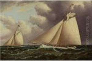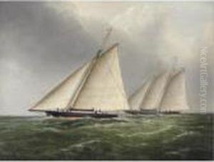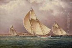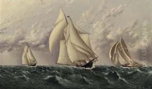 A Schooner And Other Yachts Racing Downwind At Sunset