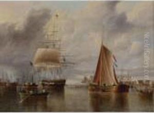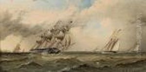 An English Merchantman And Paddle Steamer Caught In A Channelgale