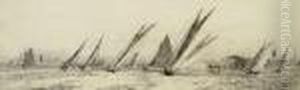 Racing In New York Harbor Off Castle William And Govenor's Island
