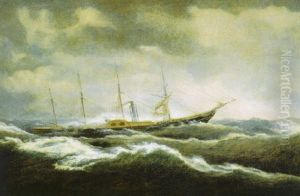 Steamship Charging Through Rough Waters