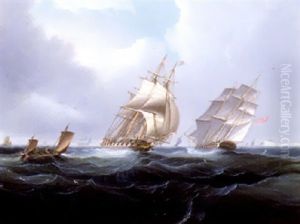 A Frigate Reducing Sail With The Pilot Cutter Off Her Port Quarter