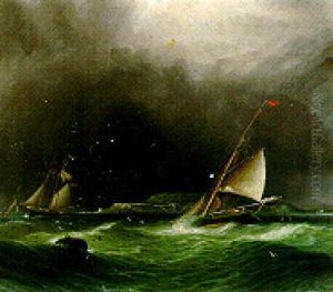 Gaff-rigged Cutters Off A Coastline