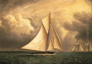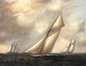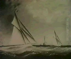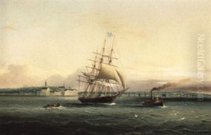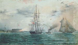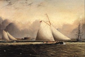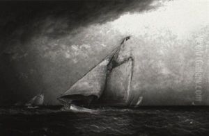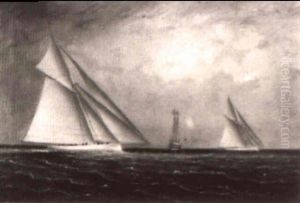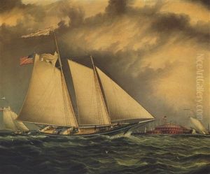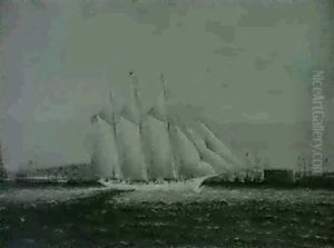 American Three-masted Centre- Board Schooner "washington"offthe Sandy Hook Lightship With Pilot Boat '4' In Background