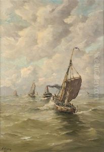 The National Line's Steamer 'italy' Amidst Other Vessels At Sea, Packet 'mercury' To Stern