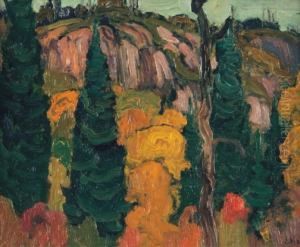 MacDonald's work is characterized by a vibrant palette and energetic brushstrokes that convey the dynamic and untamed aspects of the Canadian landscape. He often focused on scenes of the northern landscape, particularly the areas around Algoma and the Rocky Mountains. His paintings such as 'Mist Fantasy, Northland' and 'Falls, Montreal River' are noted for their emotional intensity and their ability to evoke the sense of awe and wonder that MacDonald felt towards nature.