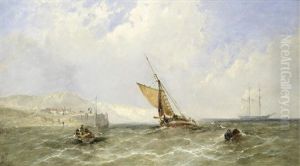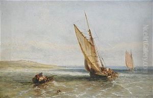 Shipping Off The Coast With Fishermen Landing Their Catch