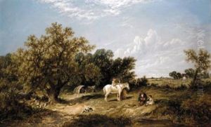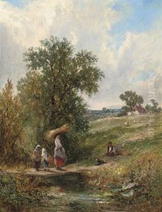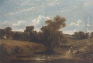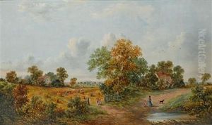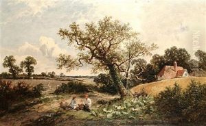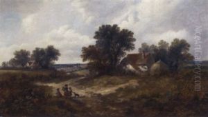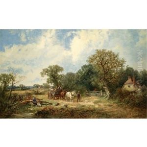 Harvesters Before A Cottage In An Extensive Summer Landscape
