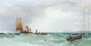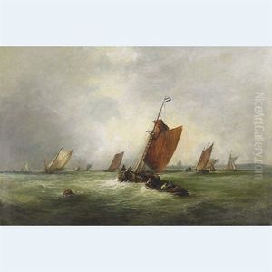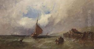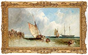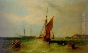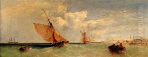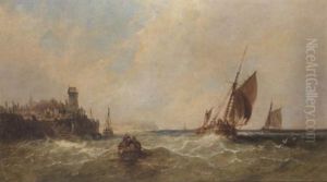 Fishing Boats Off A Fortified Island (lindisfarne?)