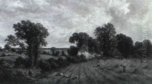 Rural Landsccape With Farmers And Haywagon