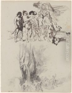Skeletons fighting over a Hanged Man