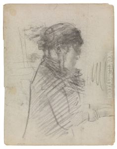 Hoofd van een fluitspelende vrouw