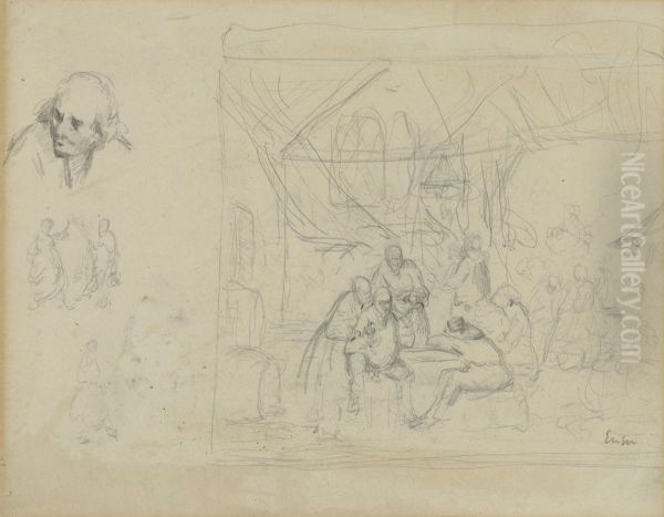 Bring the timeless beauty of James Ensor's Schets naar oude meester en figuren (recto) into your home with a handmade oil painting reproduction. Carefully recreated on canvas by skilled artists using traditional techniques, this piece captures the delicate brushwork, subtle light, and vibrant color of the original masterpiece. With museum-level quality and rich texture, it brings elegance and artistic depth to any space. Enjoy free shipping and make this masterpiece a part of your personal collection.